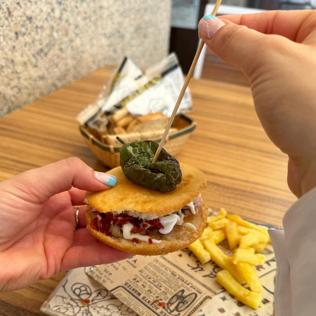 Pedimos varios platos al centro para compartir y luego una hamburguesa para cada uno!!